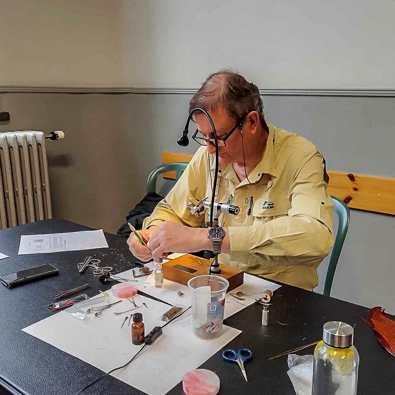 Pour un club de pêche à la mouche, le montage des mouches est une activité essentielle.