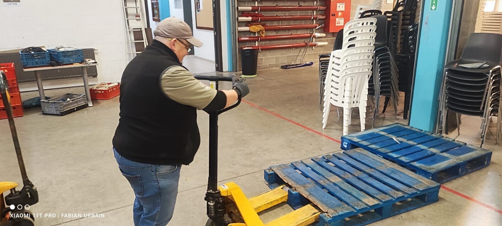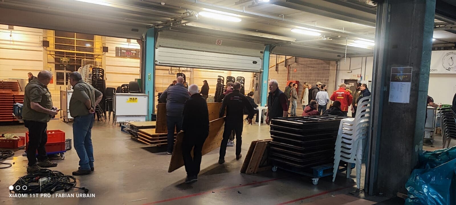 Il restait à une équipe plus réduite à transporter et remiser tout le matériel vers notre entrepôt de Walcourt le lundi matin.