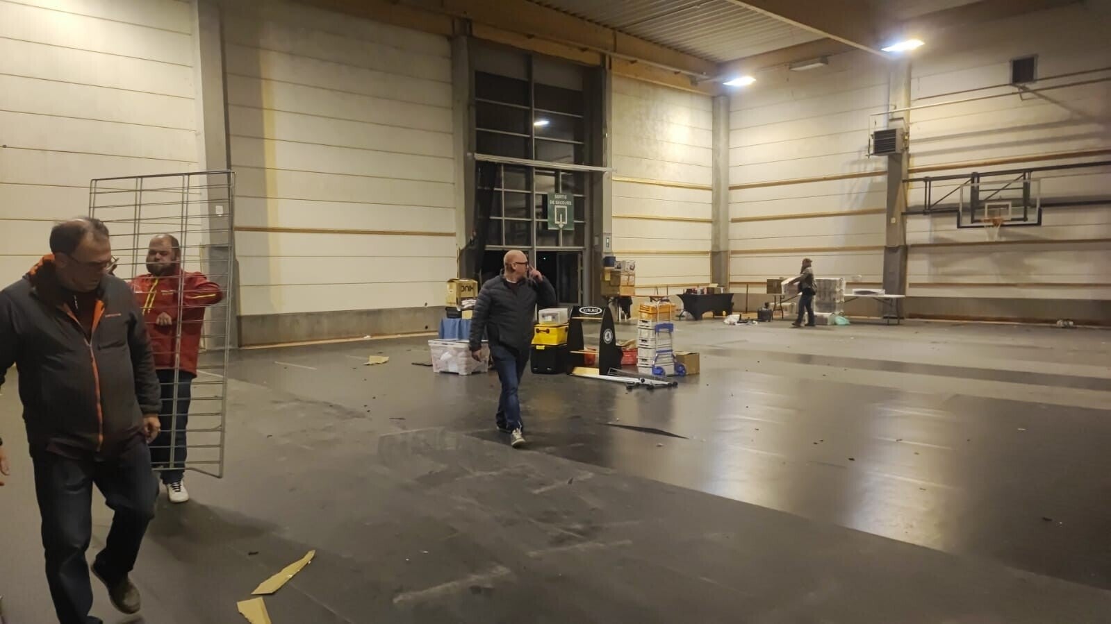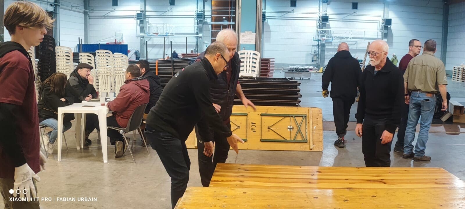 Ces 2 derniers jours (26 et 27/1), nos équipes se sont mises à l'oeuvre avec enthousiasme et les tâches programmées ont été assurées avec succès (acheminement du matériel en provenance de notre hangar de stockage, montage des stands, préparation des salles,...).