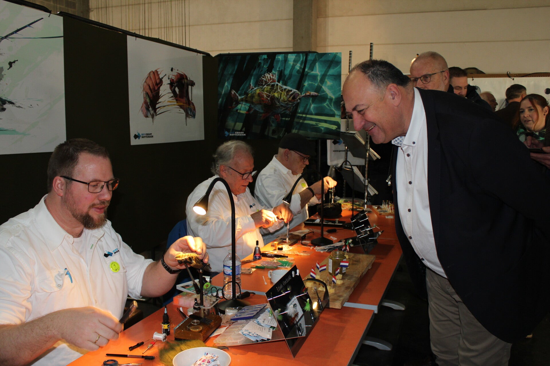 Vers 11 heures, le ministre régional de l’agriculture et de la pêche (entre autres fonctions), Monsieur Willy Borsus, nous a fait l’honneur de visiter notre salon, accompagné des dirigeants de « La Maison Wallonne de la Pêche », l’organisme en charge de la pêche en région wallonne.