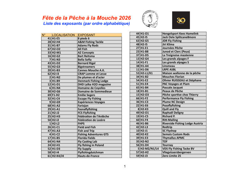 20/9/2025 - Salon "Fête de la Pêche à la Mouche" Janvier 2026.